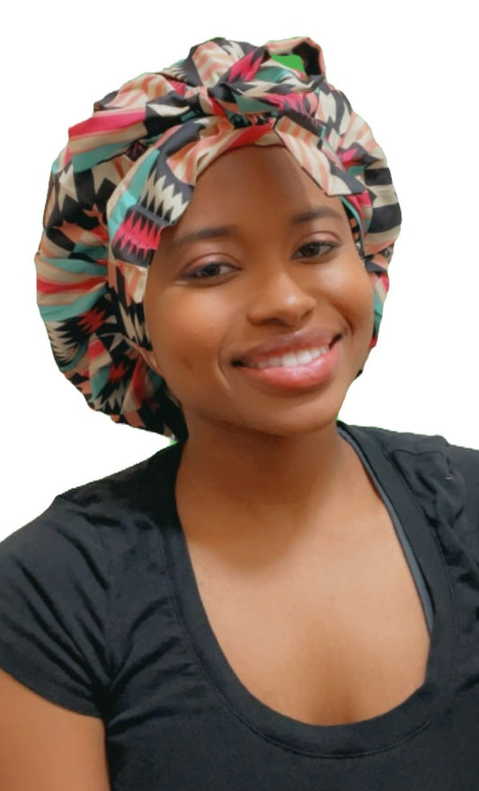 Double Lined Large Bonnet!Color: Flower,Purple,Jamican, black,yellow,brownEquipped with a durable elastic band to keep it in...
